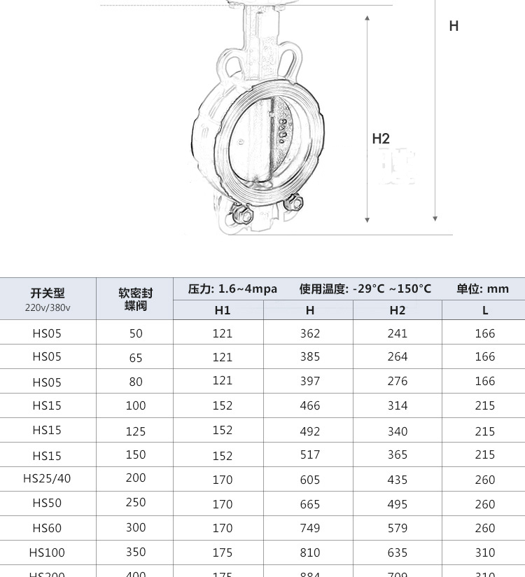 D971X電動對夾蝶閥產品資料介紹 D971X電動對夾蝶閥型號規格